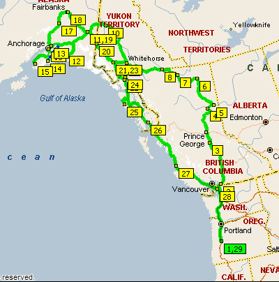 The Alaska trip travels north through Canada to the Alcan Highway. We continue going northwest to